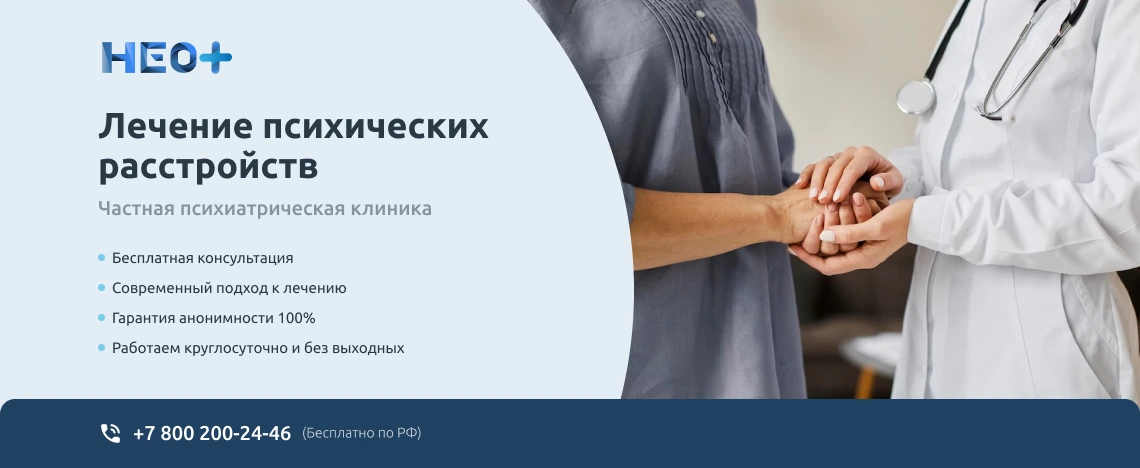 Чтобы ускорить процесс нормализации состояния, обратитесь в клинику «НеоПлюс» в Щиграх. У нас работают профессиональные врачи, которые знакомы с особенностями лечения заболевания. Они изучат состояние пациента, проведут диагностику и разработают грамотную схему лечения. Чтобы обратиться в отделение психиатрии и получить квалифицированную помощь, позвоните по телефону ☎️ +7 (800) 200-24-46. Дополнительно можно оставить заявку через форму обратной связи. Наши сотрудники ответят на звонок, после чего подскажут, как воспользоваться услугой.